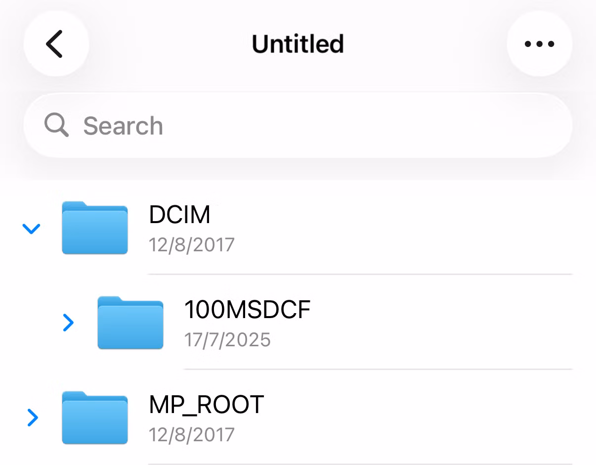 iPhone розглядає цифрову камеру як звичайний зовнішній накопичувач, тому ви зможете переглядати та передавати файли, а також імпортувати медіафайли у свою бібліотеку фото одразу після підключення камери. Я перевірив це на старій Sony a6500, для якої довелося адаптувати кабель micro USB на USB-A для підключення до USB-C порту iPhone.