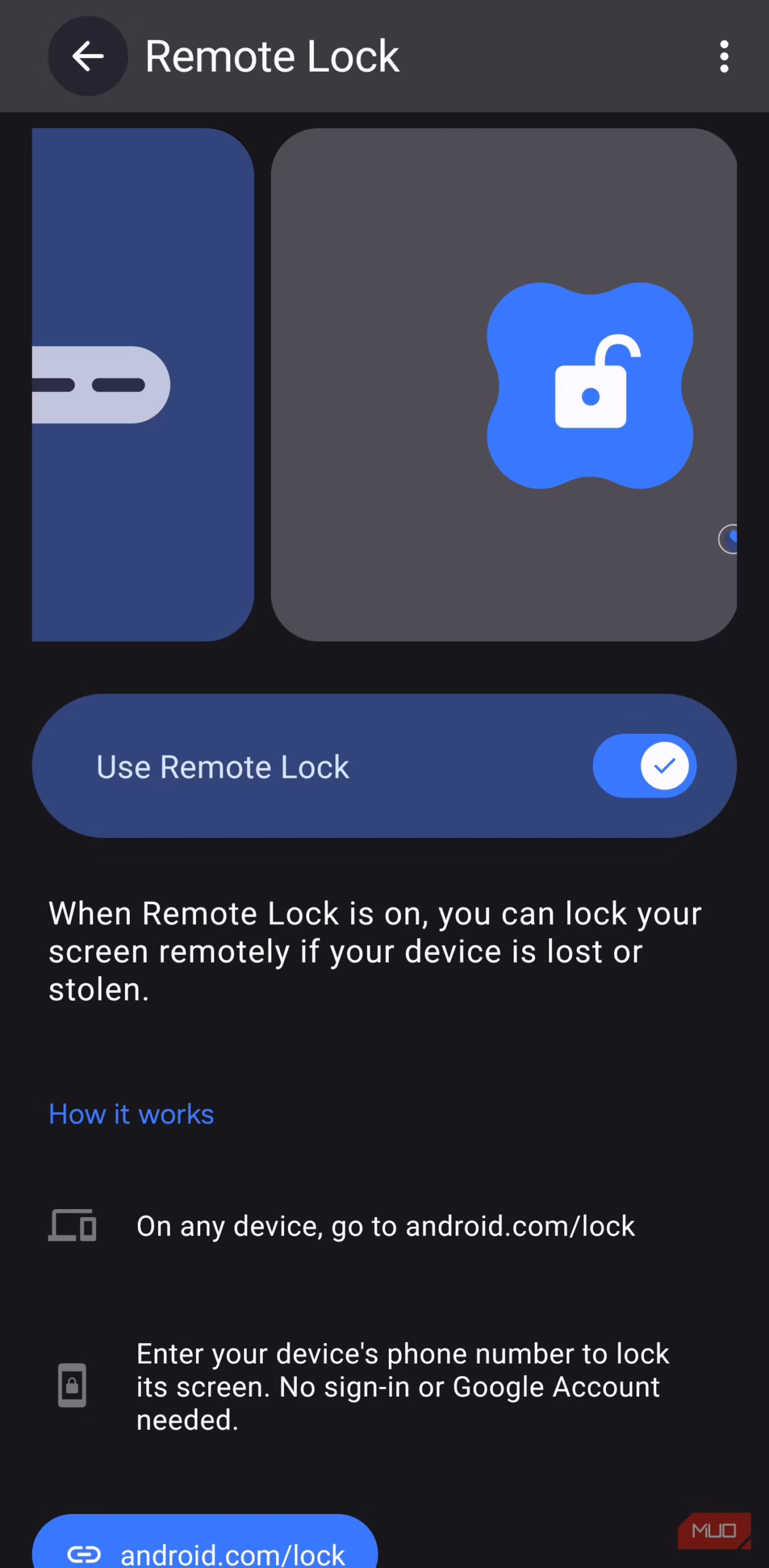 Нові версії Android містять функції захисту від крадіжки: смартфон може автоматично заблокуватися, якщо зафіксує різкий підозрілий рух — наприклад, спробу вирвати телефон із рук. Передбачено також автоблокування в офлайн-режимі, якщо пристрій тривалий час залишається відключеним від мережі, та можливість дистанційного блокування через обліковий запис Google.