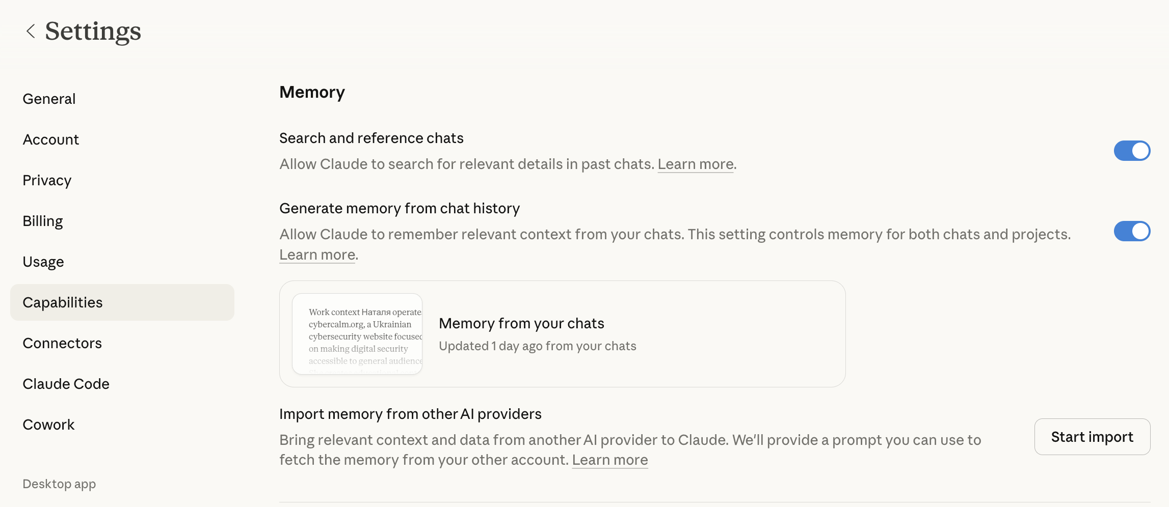 На перший погляд пам’ять може здатися другорядною деталлю, проте саме вона визначає якісно інший рівень взаємодії з AI-асистентом. Без неї кожна розмова починається з нуля, а відповіді залишаються узагальненими. З пам’яттю Claude здатний враховувати особистий контекст: стиль комунікації, робочі звички, попередні домовленості — і це суттєво підвищує практичну цінність інструменту.
