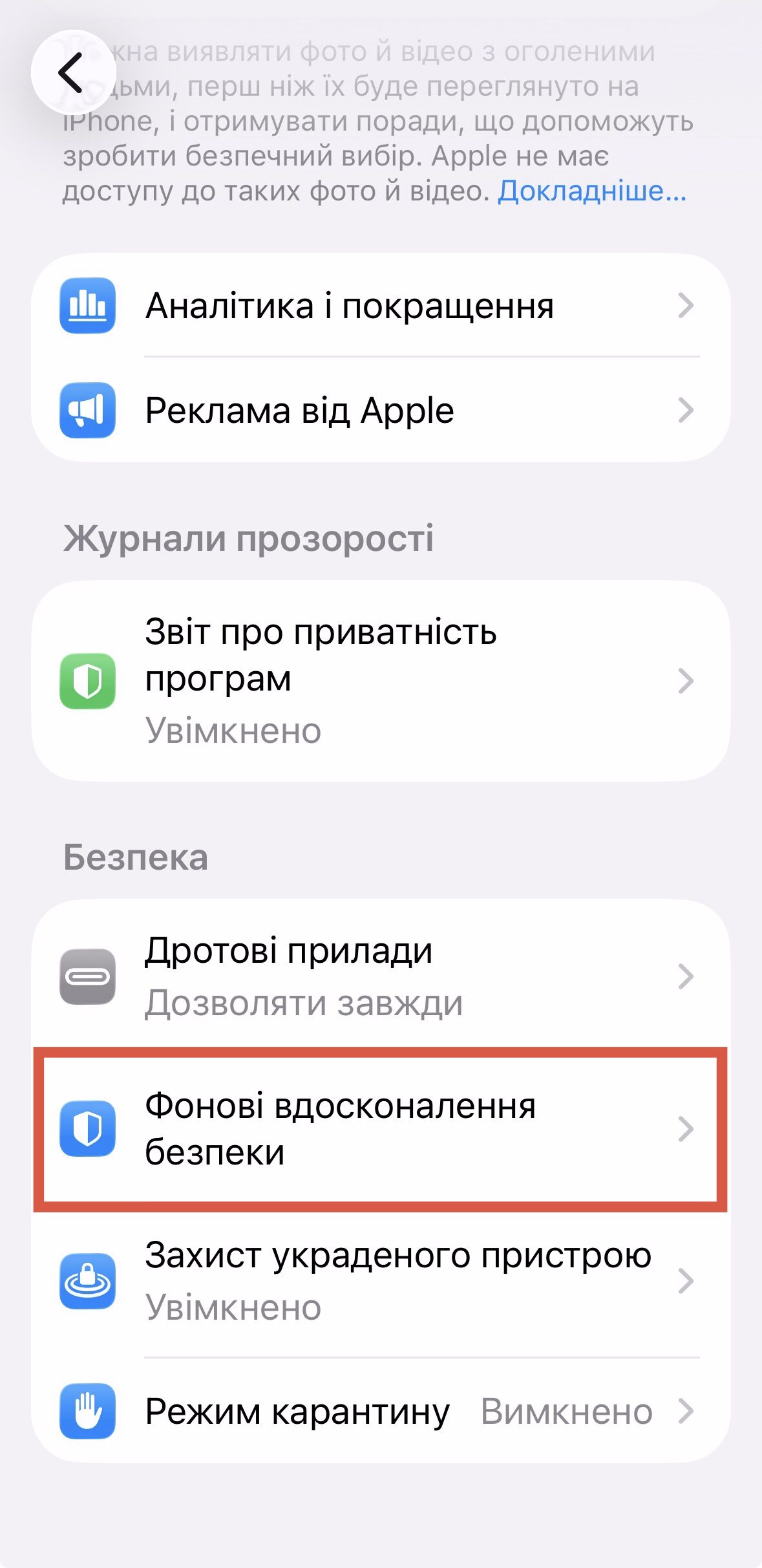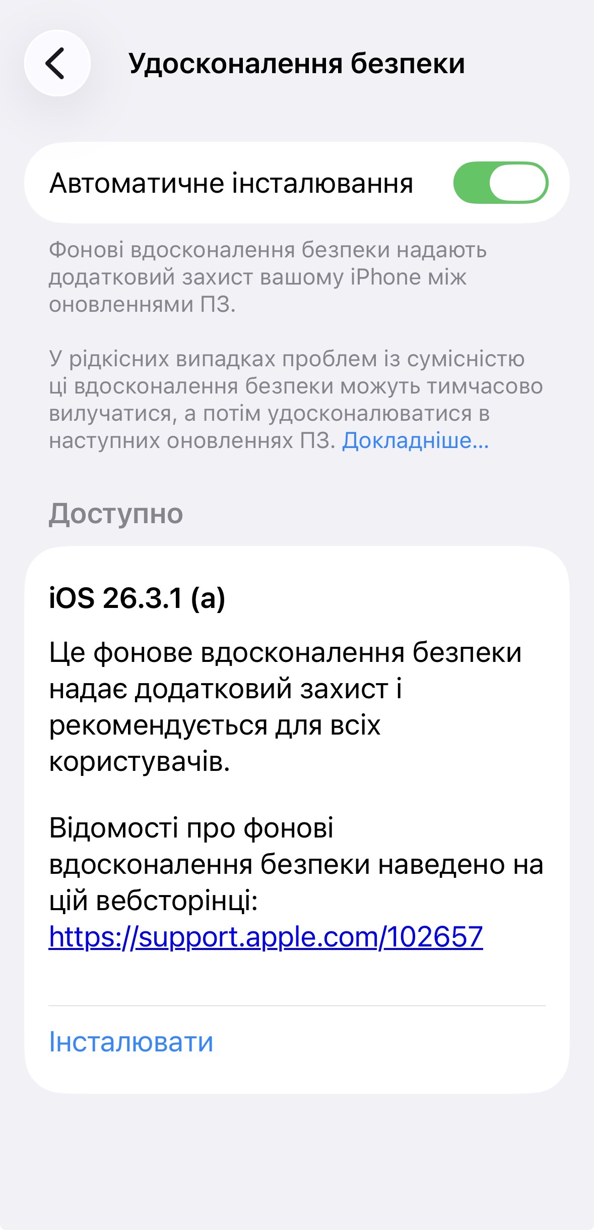Деталі про фонові оновлення безпеки можна переглянути в розділі “Приватність і безпека” (Privacy & Security) у меню “Параметри” вашого пристрою.