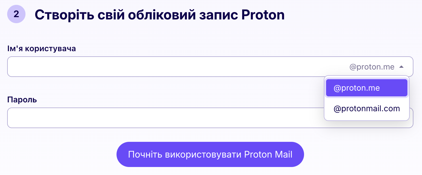 • 2. Proton пропонує вибір домену