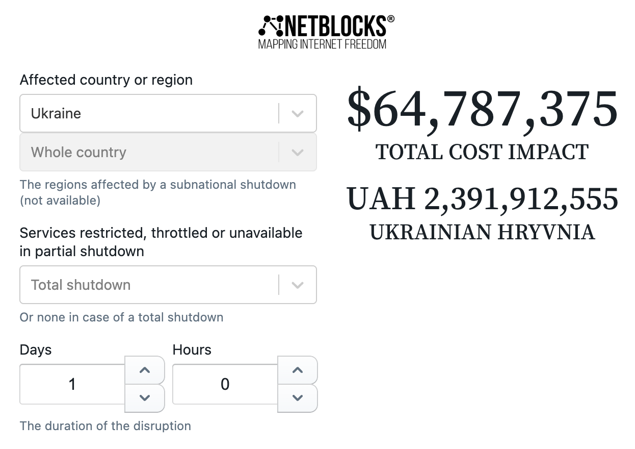 Саме для вимірювання цих втрат NetBlocks створила сервіс Cost of Shutdown Tool (COST).