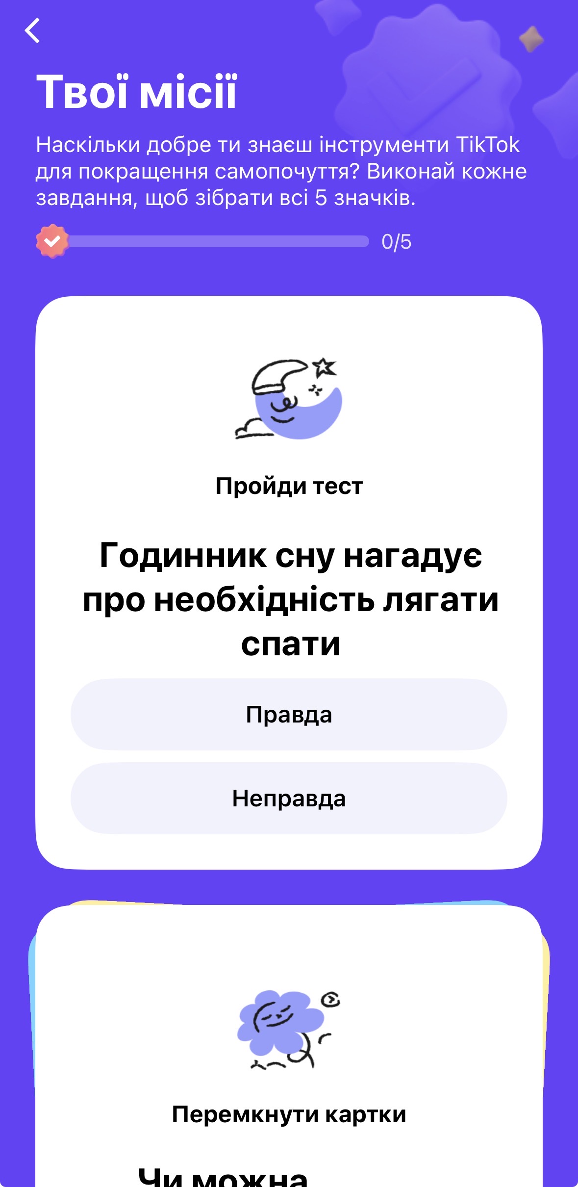 Соціальна мережа також оголосила про запуск нової функції під назвою Місії в сфері добробуту (Well-being Missions) — серії коротких вікторин та інтерактивних карток, які допомагають людям розвивати збалансовані цифрові звички. Користувачі отримують значки, виконуючи ці місії.