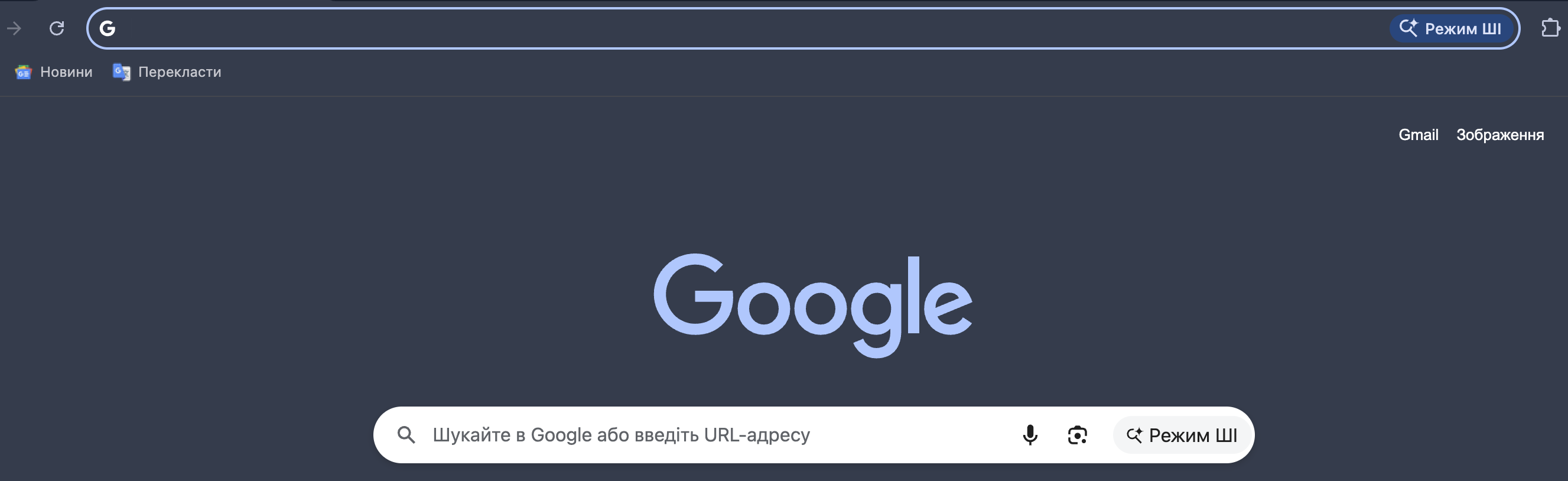 До виконання цих кроків Chrome мав режим Режим ШІ в адресному рядку та в полі пошуку.